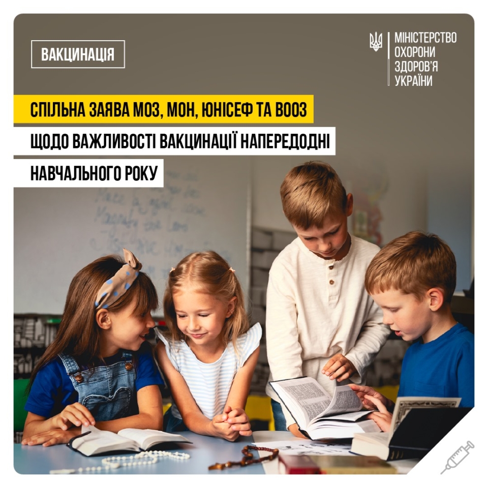 Безпечне навчання та захищений імунітет: спільна заява МОЗ, МОН, ЮНІСЕФ та ВООЗ щодо важливості вакцинації напередодні навчального року
