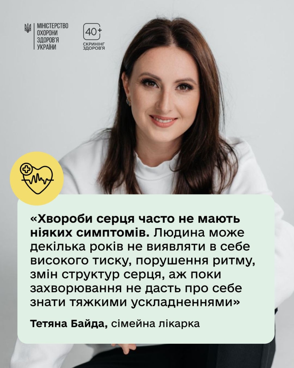 В Україні з січня 2026 року розпочалася національна програма «Скринінг здоров’я 40+», яка дає можливість безоплатно перевірити стан здоров’я, оцінити індивідуальні ризики та разом із лікарем визначити, на що варто звернути увагу саме вам. У межах програми також можна пройти обстеження на серцево-судинні захворювання та ризики їх виникнення (а ще — перевіритись на цукровий діабет та проблеми з ментальним здоров’ям).
