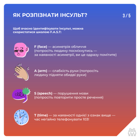 Детальніше про те, як розпізнати та діяти при інсульті у інфографіці та за посиланням: https://bit.ly/4duqMdk