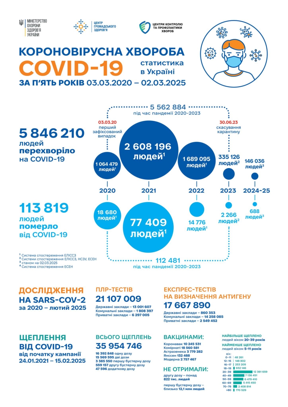 Загалом було здійснено близько 36 мільйонів щеплень, найбільше серед осіб віком 20–39 років. Завдяки спільним зусиллям у 2024 році кількість випадків COVID-19 в Україні скоротилася до 145 518, а смертельних випадків — до 688, порівняно з 2 608 196 випадками захворювання і 77 409 летальними випадками на піку пандемії у 2021 році.