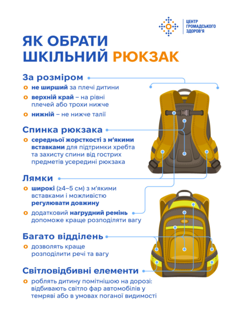 До початку навчального року ми спільно з ЦГЗ підготували поради, як правильно обрати рюкзак і письмове приладдя, щоб зменшити фізичне навантаження на тіло дитини та зробити навчання комфортнішим.