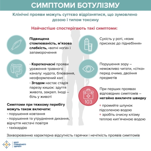 За найменшої підозри на ботулізм негайно зверніться до лікаря! Госпіталізація обов’язкова незалежно від тяжкості перебігу захворювання.