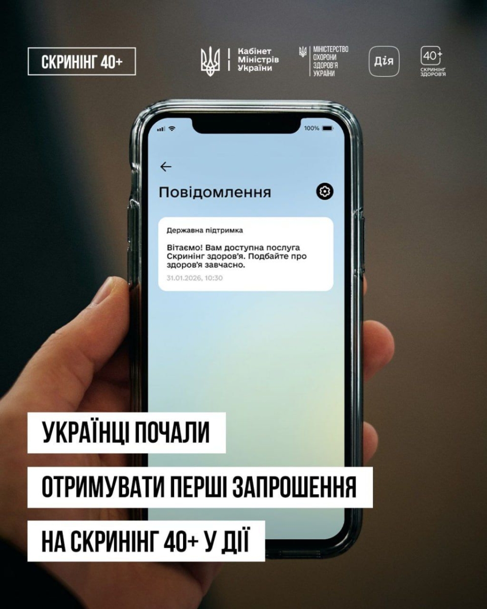 Це — найперші запрошення до участі в національній програмі Скринінг здоров’я 40+. Вони надійшли українцям та українкам, старшим 40 років, які відзначили свій день народження 1 січня 2026 року. Адже саме сьогодні минуло 30 днів від цього дня!