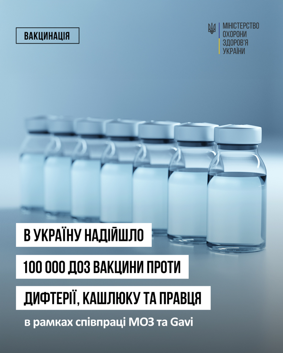 В Україну надійшло 100 000 доз вакцини проти дифтерії, кашлюку та правця для вакцинації дітей