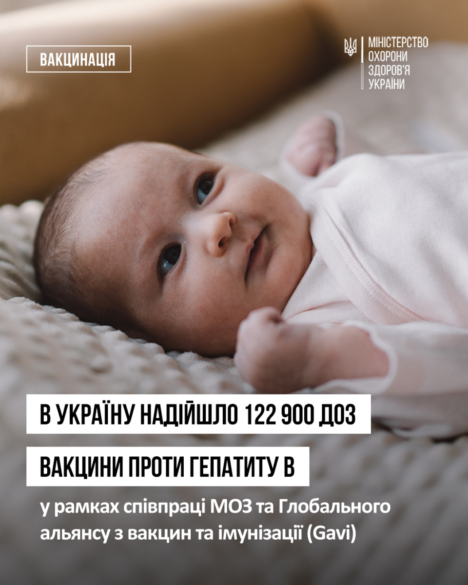 122 900 доз вакцини проти вірусного гепатиту B для щеплення дітей проти гепатиту B за Календарем профілактичних щеплень вже розподілено по областям. Це частина поставки вакцин, які Україна отримує в рамках співпраці Міністерства охорони здоров’я з Глобальним альянсом з вакцин та імунізації (Gavi, the Vaccine Alliance). У межах даного партнерства, закупівлю та доставку вакцин до країни здійснює UNICEF Ukraine. Розподіл препаратів до областей координує Центр громадського здоров’я України.
