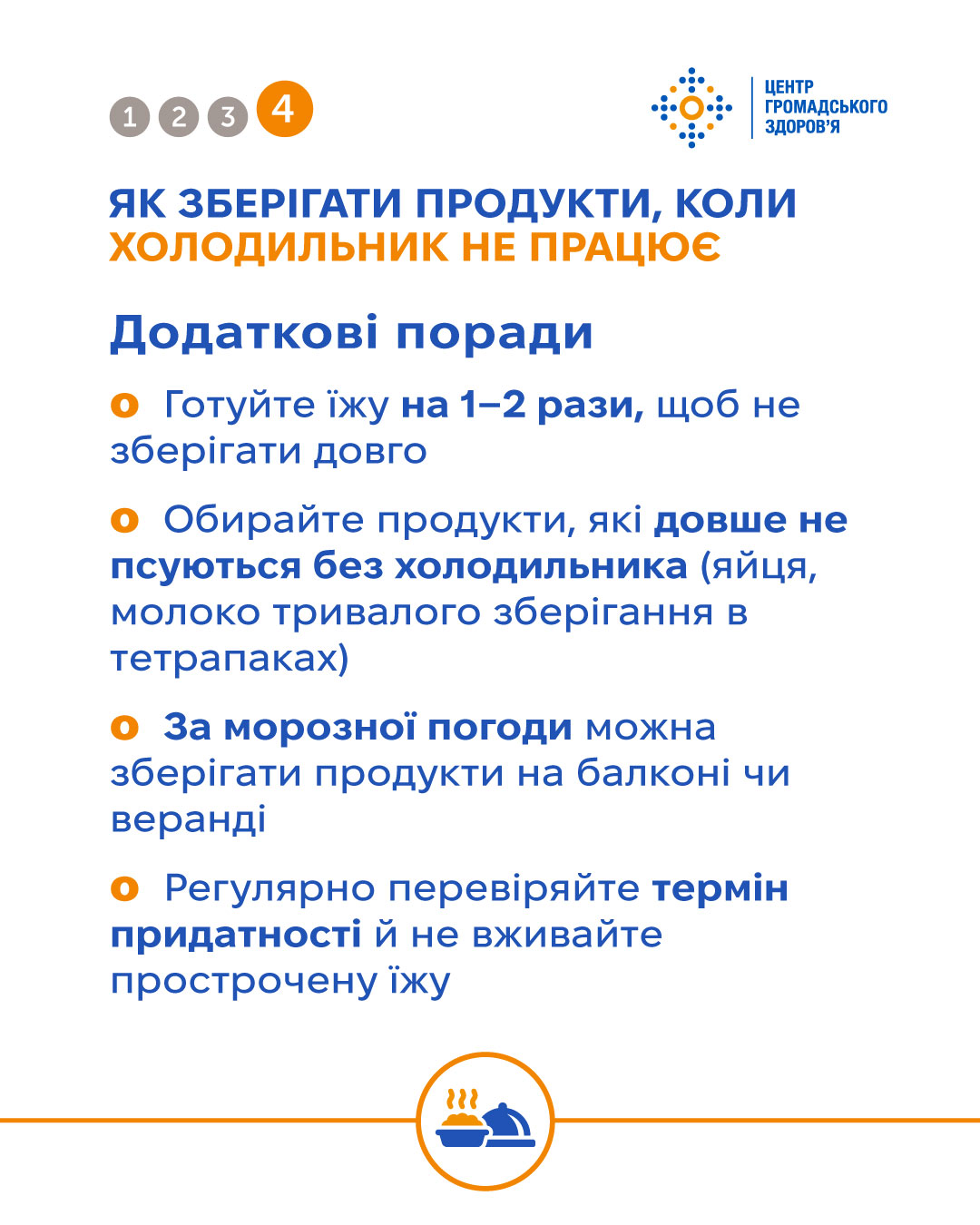 – якщо в холодильнику продукти мають температуру +4℃ або нижче, їх можна споживати.
