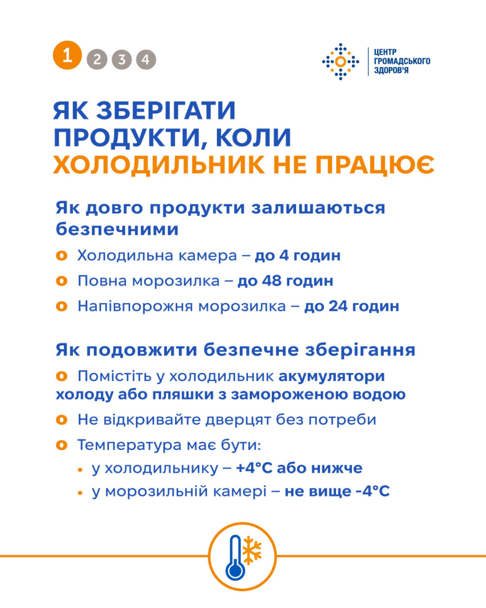 В умовах стабілізаційних і екстрених відключень електроенергії важливо вміти правильно зберігати продукти, щоб уникнути харчових отруєнь та зменшити втрати харчів. Нагадуємо про ключові поради, як організувати харчування та зберігання їжі, коли холодильник вимкнений по декілька годин.
