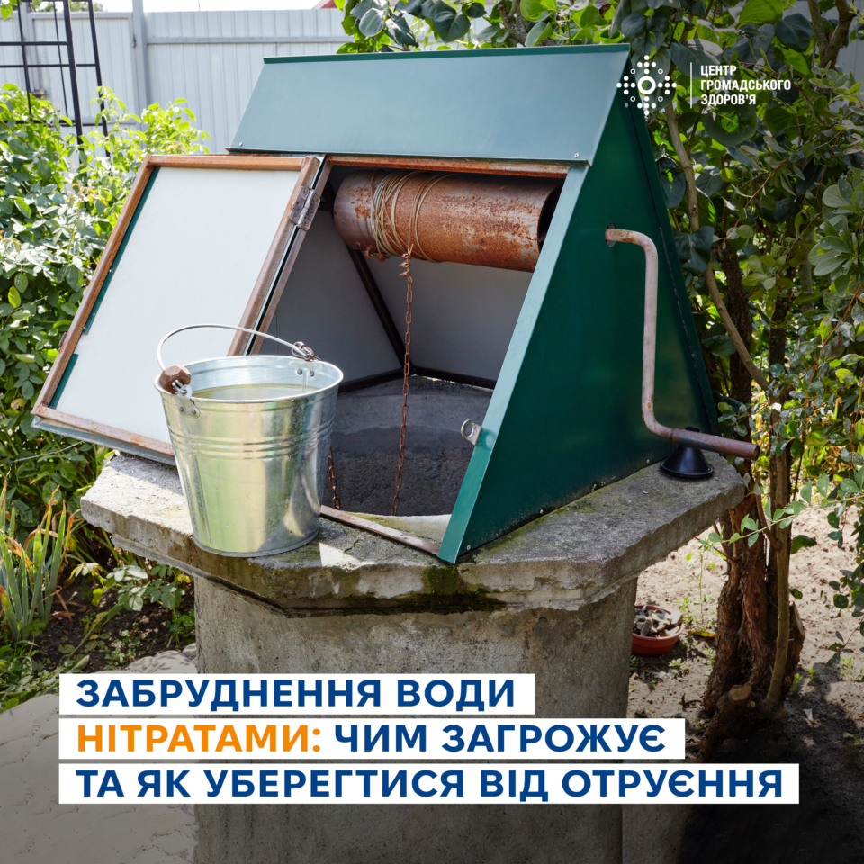 Нітрати можуть потрапляти в колодязі та неглибокі свердловини з побутових і сільськогосподарських стоків. Вживати воду з перевищенням вмісту нітратів небезпечно для здоров’я, особливо дітям до трьох років. Тому держава здійснює контроль за рівнем нітратів у воді з нецентралізованих джерел водопостачання домогосподарств, у яких мешкають такі діти.